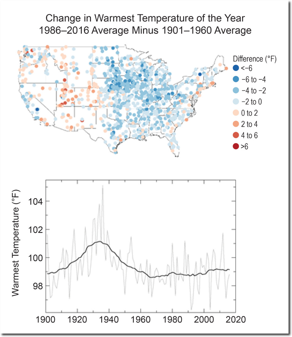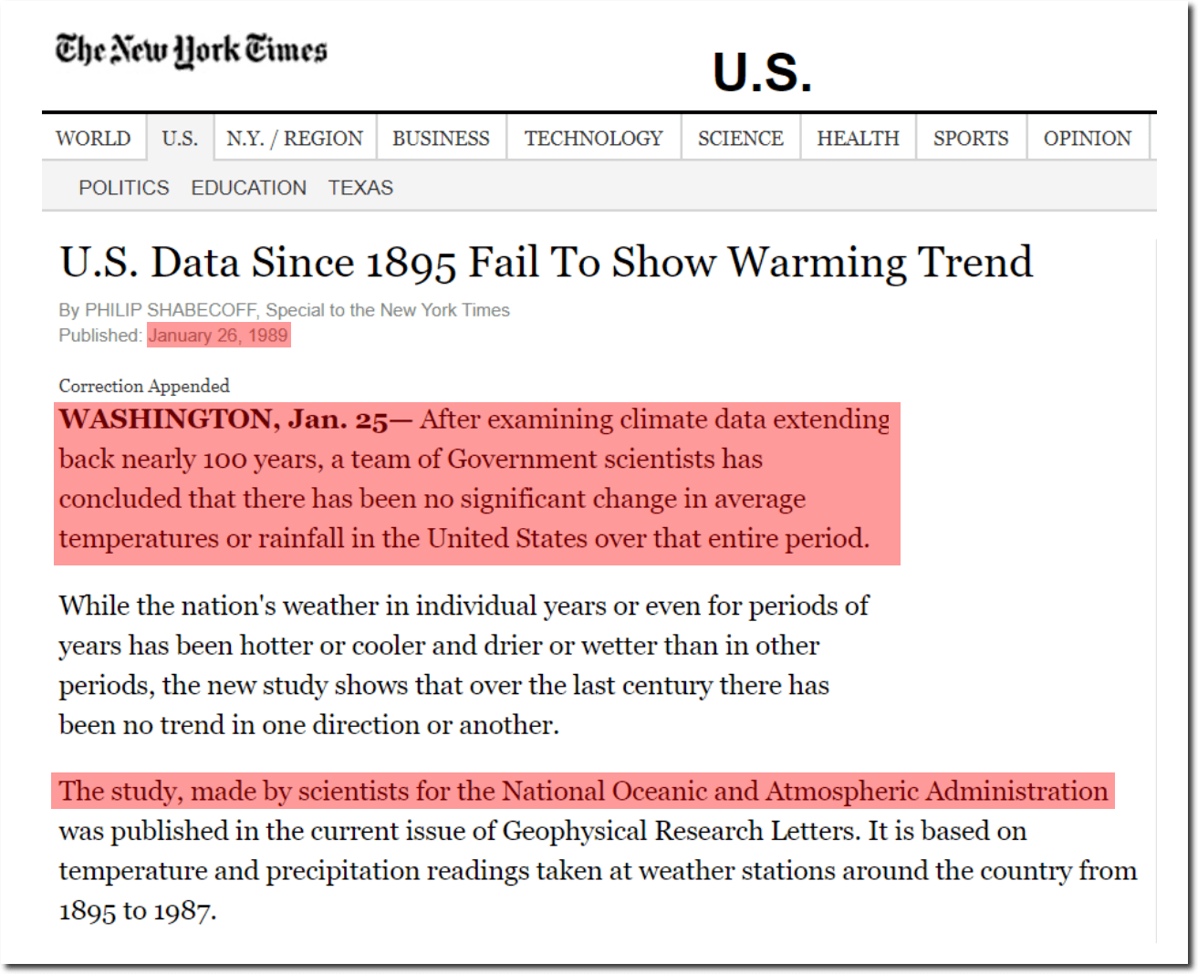 Ma tre anni dopo, la NOAA riferì che non c’era stato alcun riscaldamento negli Stati Uniti nell’ultimo secolo