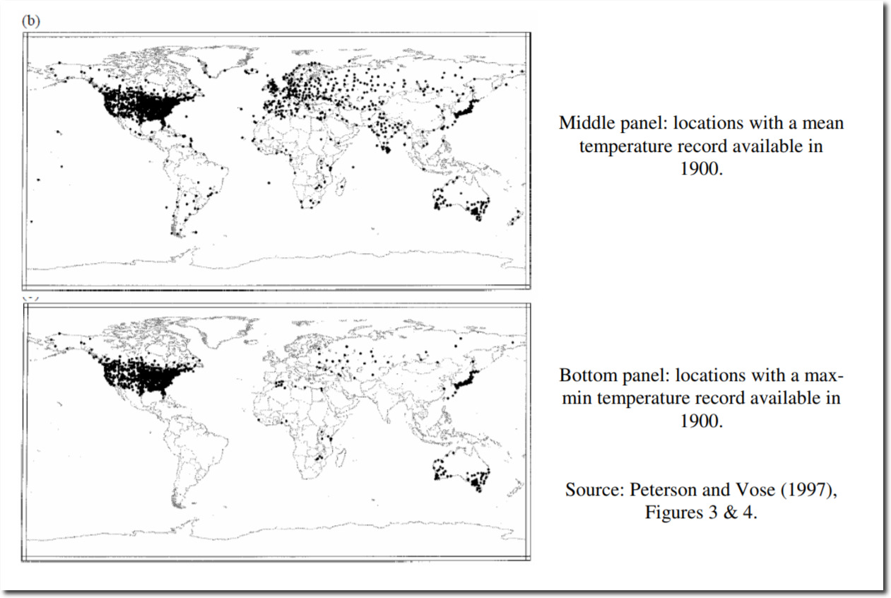 La stragrande maggioranza dei dati sulla temperatura a lungo termine di alta qualità proviene dagli Stati Uniti, e in effetti gran parte del pianeta ha pochi o nessun dato sulla temperatura a lungo termine. A causa della scarsa copertura, è dubbio che il record della temperatura globale pubblicato abbia una validità scientifica. Gli Stati Uniti sono uno dei pochissimi posti con dati affidabili sulla temperatura.