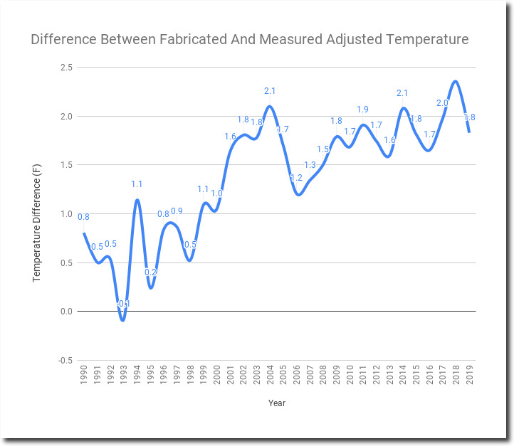 I dati falsi sono più caldi di due gradi rispetto ai dati regolati misurati. Non è difficile creare riscaldamento quando si stanno semplicemente inventando i dati.