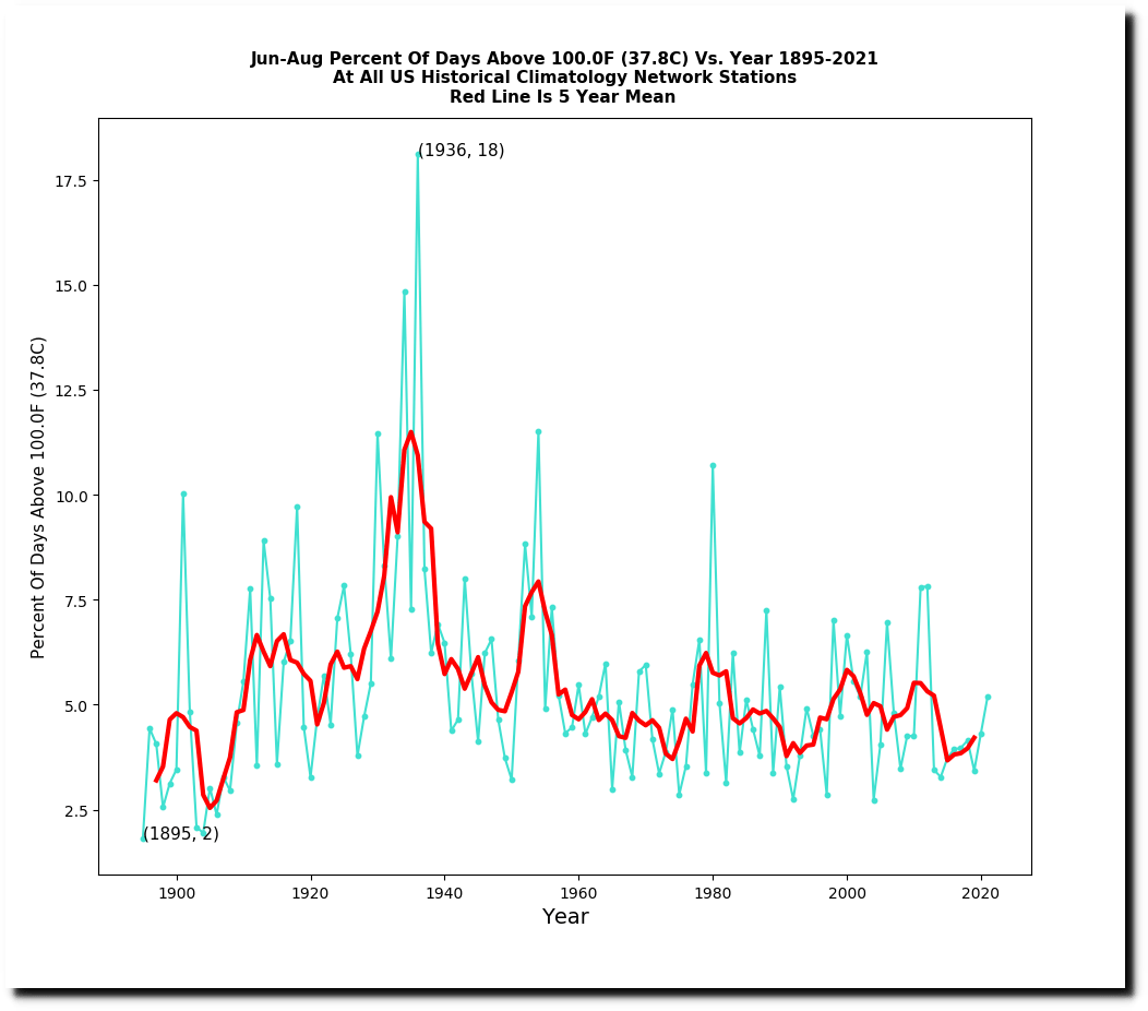Ma i dati del loro termometro mostrano l’esatto contrario, così come il National Climate Assessment. Ci sono 1.218 stazioni nella rete di climatologia storica degli Stati Uniti.